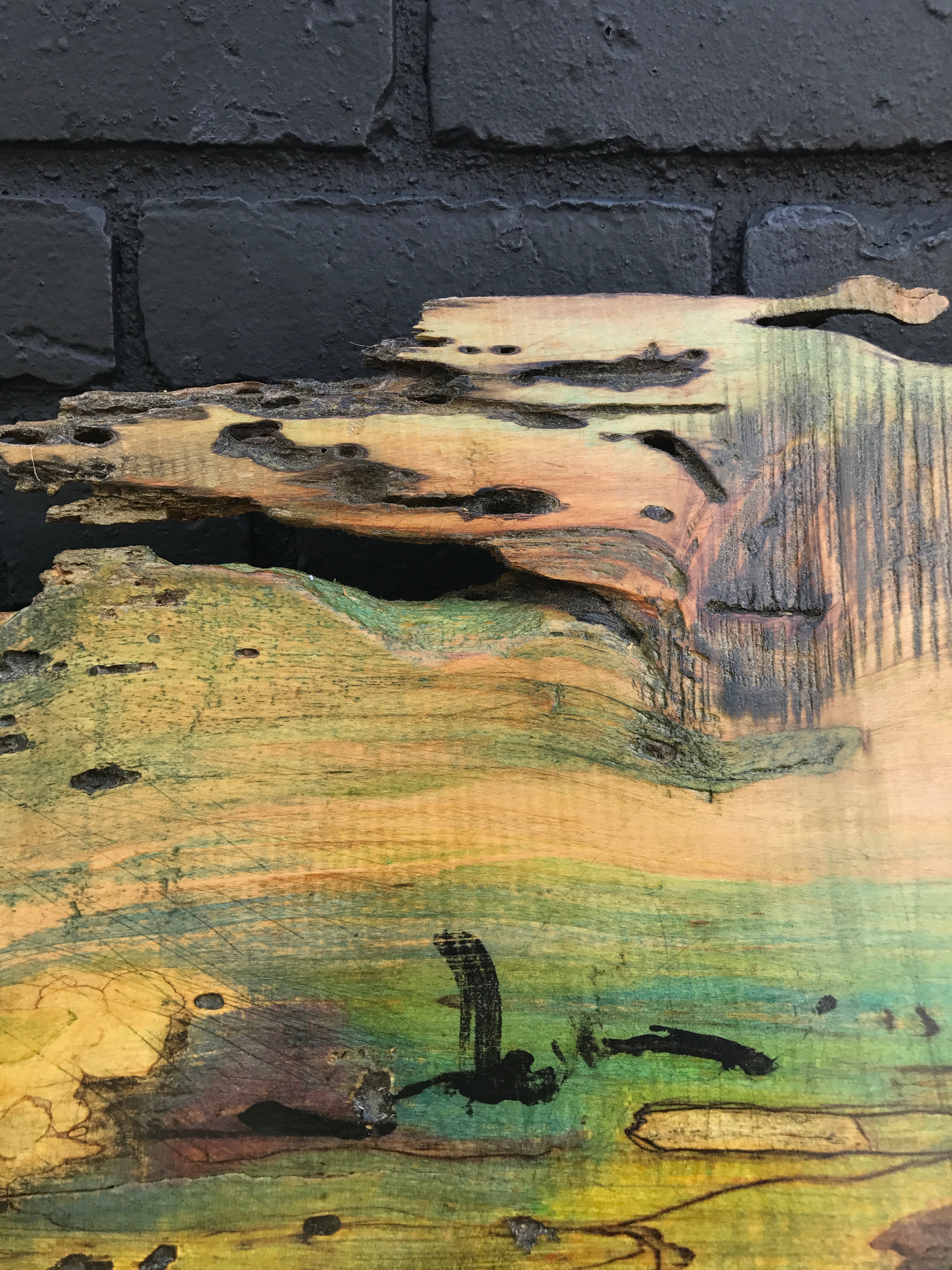 Close up of wood stain series Translating my drawing to wood and stains. This wood work was commissioned to decorate an office building in Colorado. Like Loading...